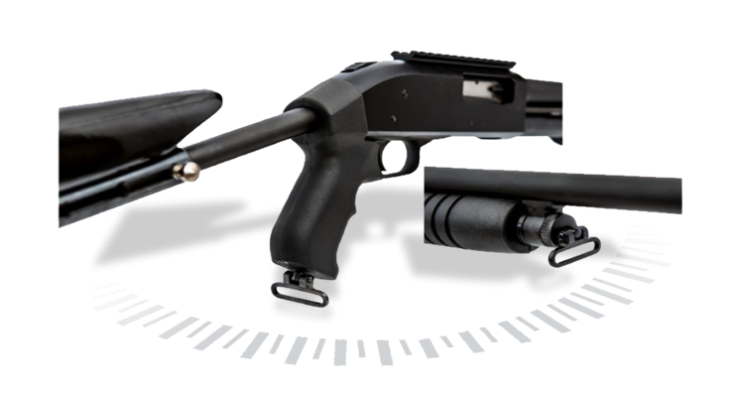 O novo suporte para bandoleira de 30 mm da espingarda Modelo BSA 5T 84 PUMP Calibre 12 possui um sistema inovador de fixação na arma pois agora ela é fixada no parafuso de fixação do conjunto cano, onde funciona como um destorcedor sendo muito útil para o manuseio da arma que deixa sempre a bandoleira reta pronta para ser utilizada.